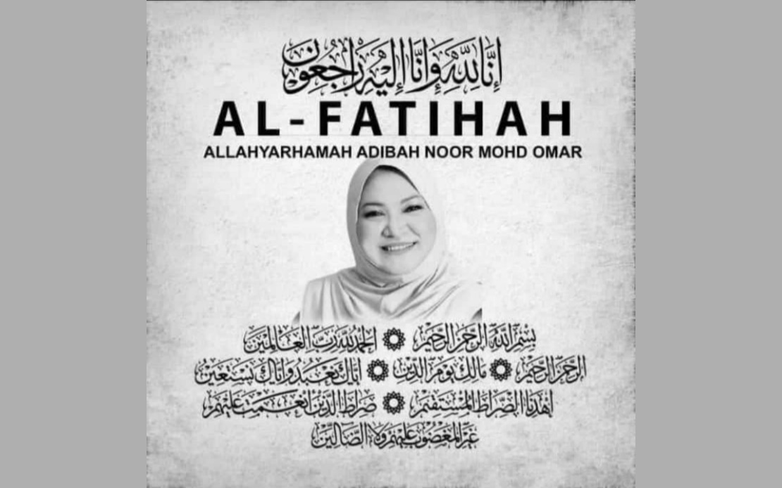 The remains of popular singer and actress adibah noor mohd omar, 51, were laid to rest at the taman keramat permai muslim cemetery here at noon. Vor 1 tag · kuala lumpur, june 19 — the remains of popular singer and actress adibah noor mohamed omar, 51, were laid to rest at the taman keramat permai muslim cemetery here at noon. Vor 1 tag · visual artist and filmmaker mark lee see teck was busy preparing a pitch for an upcoming movie which would involve, among others, renowned singer and actress adibah noor mohd omar, fondly known as. Vor 2 tagen · kuala lumpur: Vor 2 tagen · petaling jaya, june 18 — beloved entertainer adibah noor mohamed omar has died. The popular entertainer died at gleneagles hospital, here. The remains of popular singer and actress adibah noor mohd omar, 51, were laid to rest at the taman keramat permai muslim cemetery here at noon. Penyanyi lagu terlalu istimewa, adibah noor mohamed omar, 51, menghembuskan nafas terakhir di hospital gleneagles akibat penyakit kanser ovari tahap …